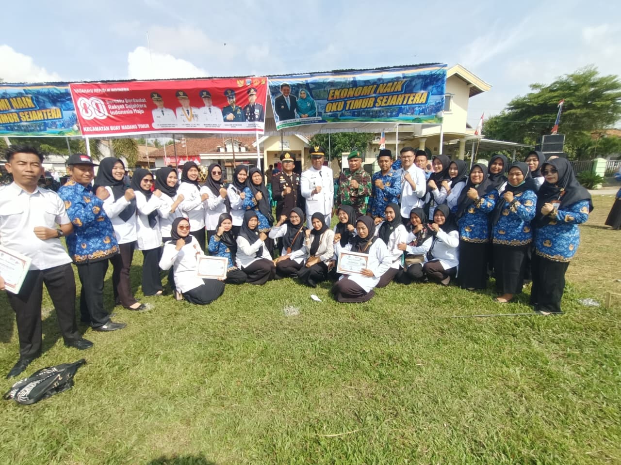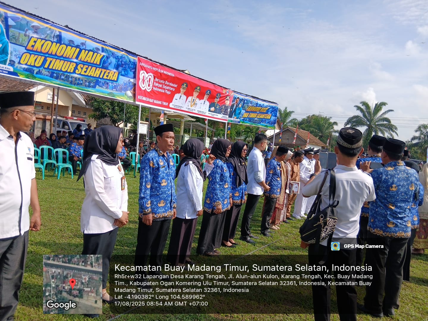 Disela – sela Peringatan HUT RI ke-80 ini Bapak Camat Buay Madang Timur memberikan piagam penghargaan kepada : 17 Kepala Desa, 13 Kepala Dusun, 5 Kepala RT, 3 Ketua TP PKK, 3 Kepala Sekolah, 2 Dokter, 4 tenaga Kesehatan, 8 Pegawai Kecamatan, dan 3 orang tenaga pendamping sosial yang berprestasi dibidangnya masing – masing.